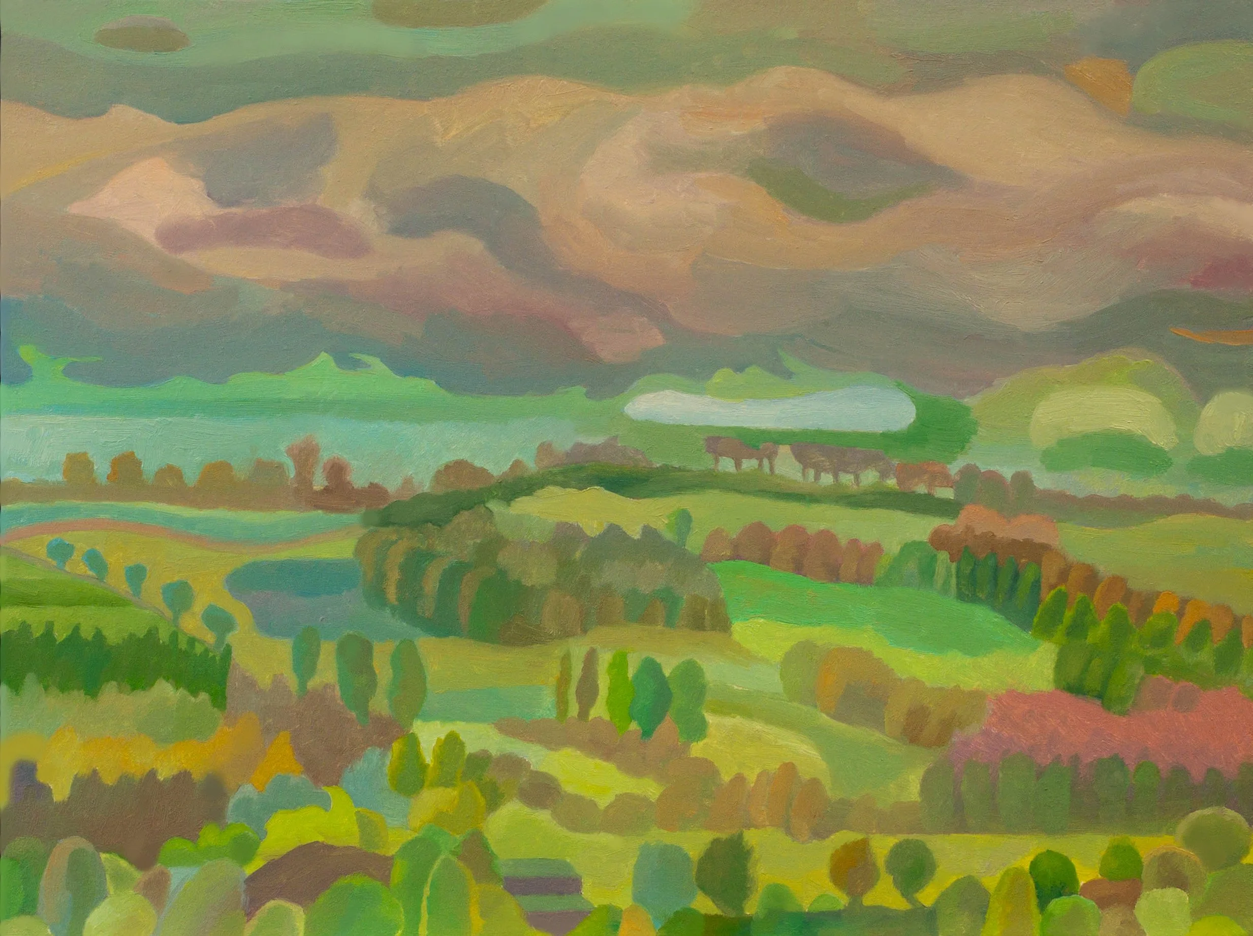 Its no wonder I never took to watercolours where you need an easy facility to achieve right first time results. This painting has finally bended to my belligerent, pig headed determination. A Trump like approach of no surrender has finally seen this painting showing some promise. Only now do I think I can make a decent painting of it, I hope this isn’t a pattern for the future. There is some pleasure in seeing my dolly mixture trees finally appearing.