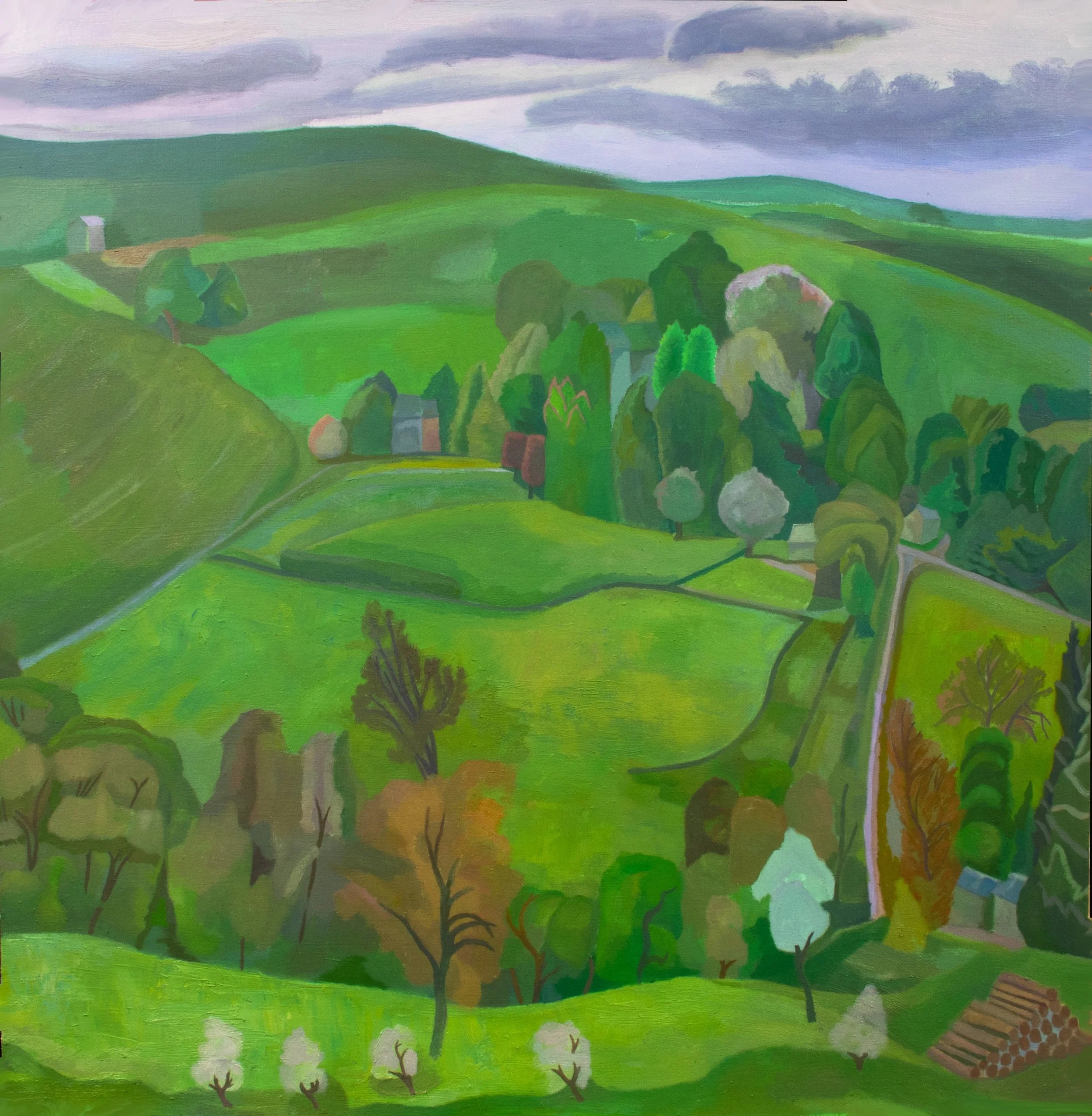 More than a week without painting, that’s not good, even with a long list of other pressing projects and shortening daylight. If I was a bit more focused I should be able to paint twice a week, and I want to. Anyway, this painting is almost finished. Its looking like a John Nash from the 1940’s but I don’t have a problem with that, I like John Nash, I have a book on him. Its my belief that you don’t choose your style, it chooses you and so I will continue. The best thing to do is not to think, just paint, as simple as this sounds its not always so easy. I am liking this painting, I like the very particular and contrasting trees, they look at odds with the landscape, they also look observed. The question is now, where does this lead me, with the choice of the next painting?
