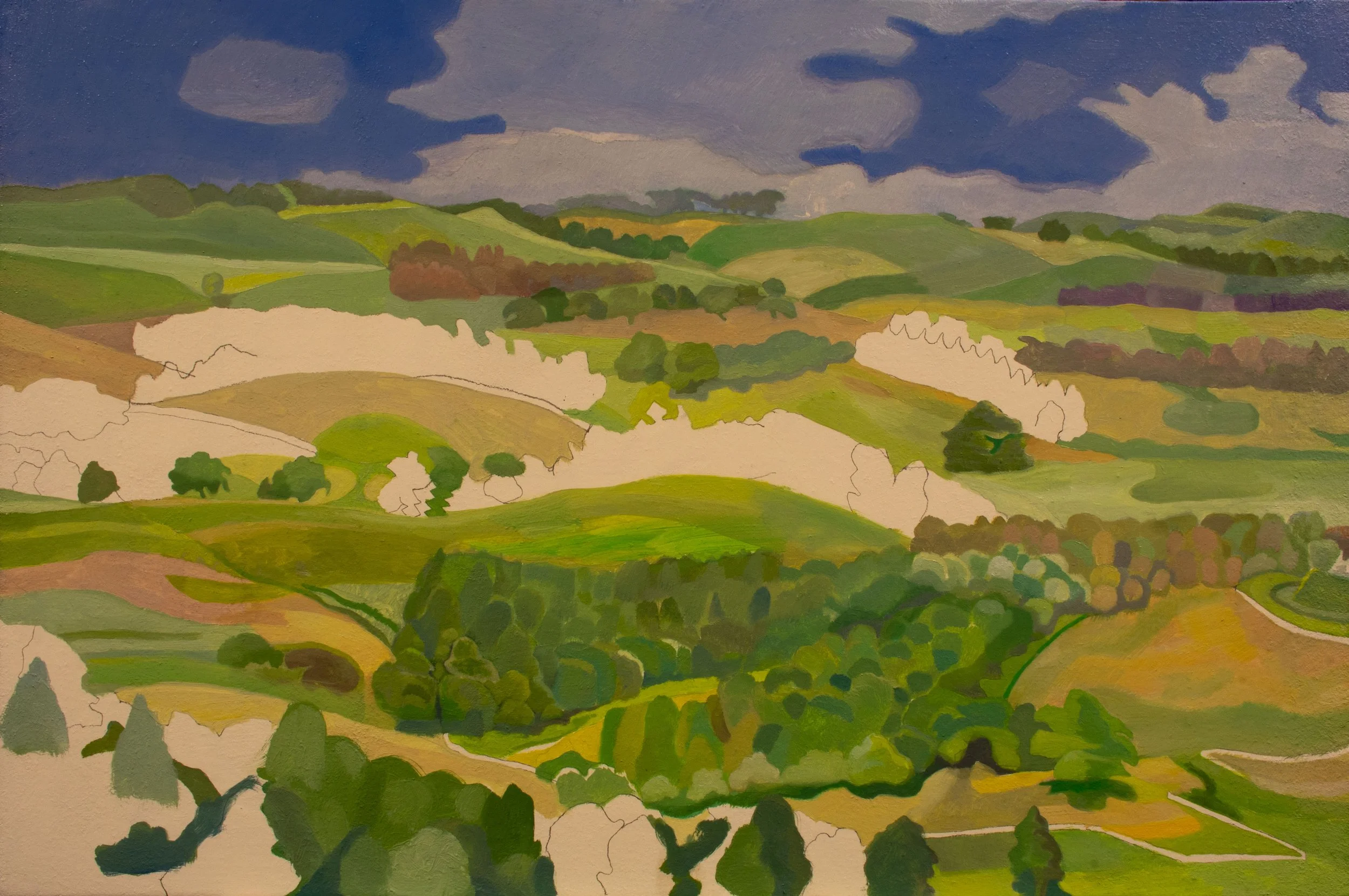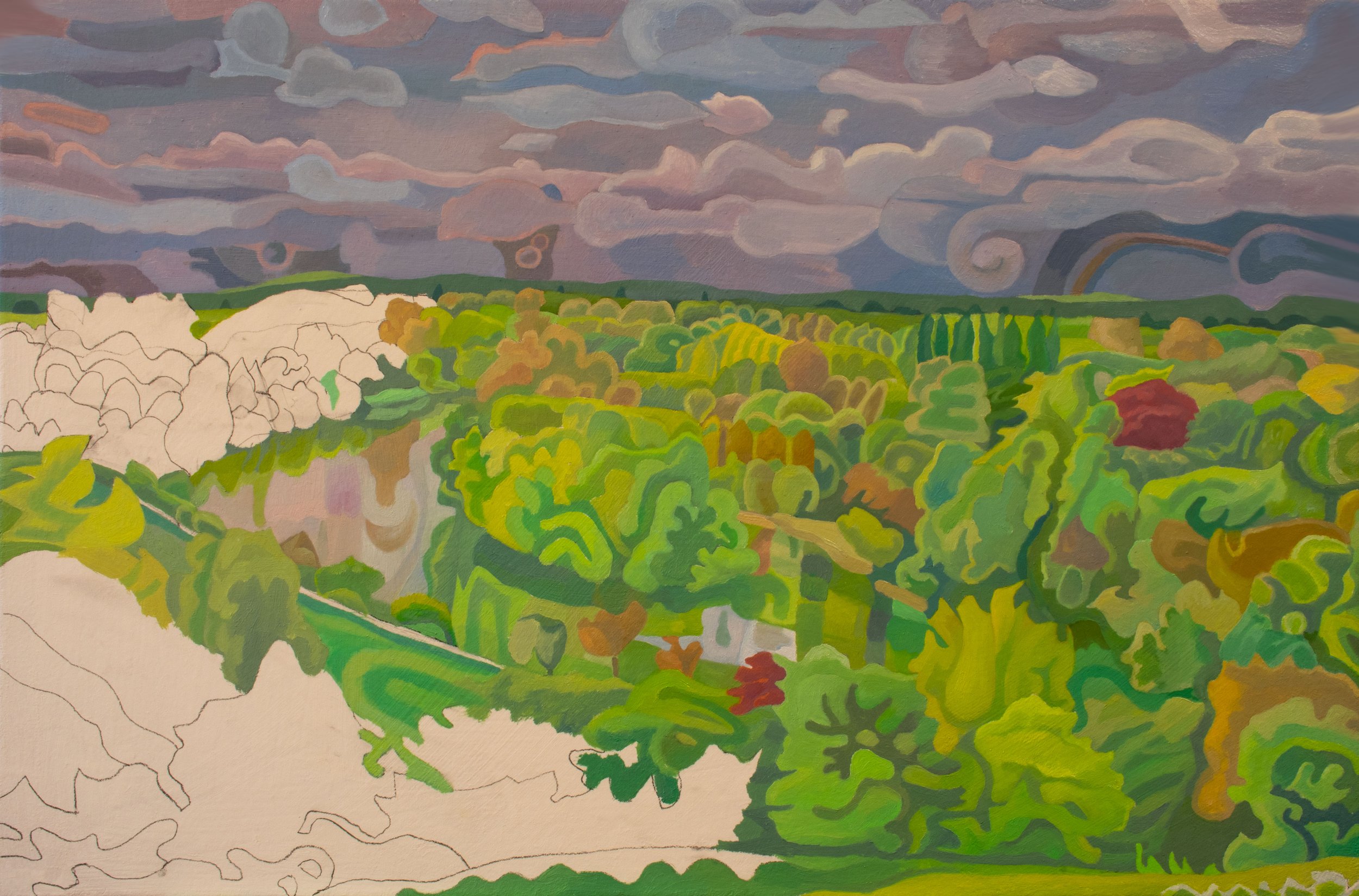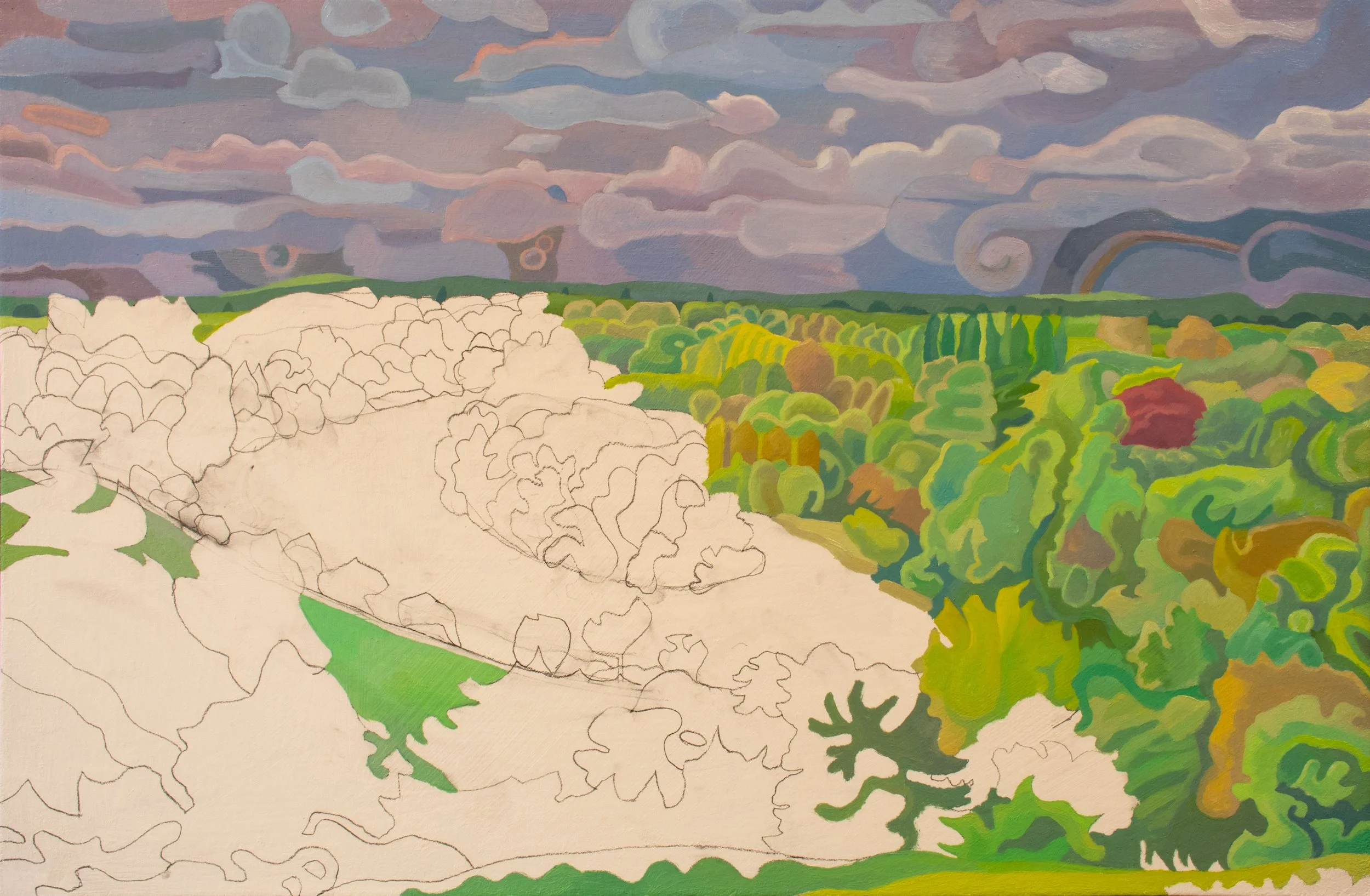 Just when you think you have moved up a level and everything is in cruise control you get a pig of a sky that will not co-operate. I have been bashing these clouds into existence for hours and it has been a frustrating experience. However, after several hours I have got it to a place where it is a good foundation. I now think I am in a winning position but they need more work.